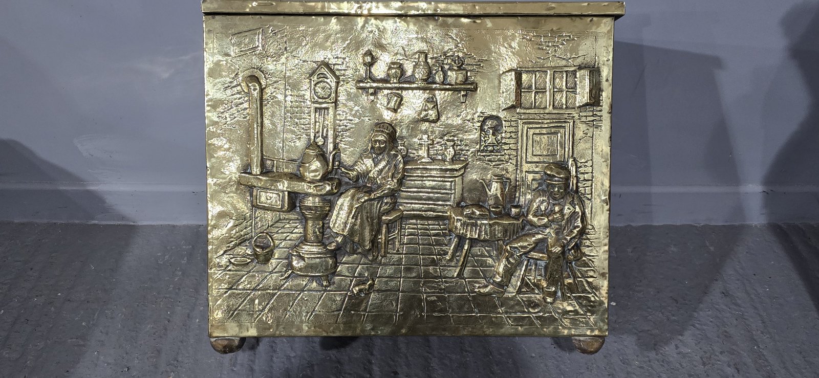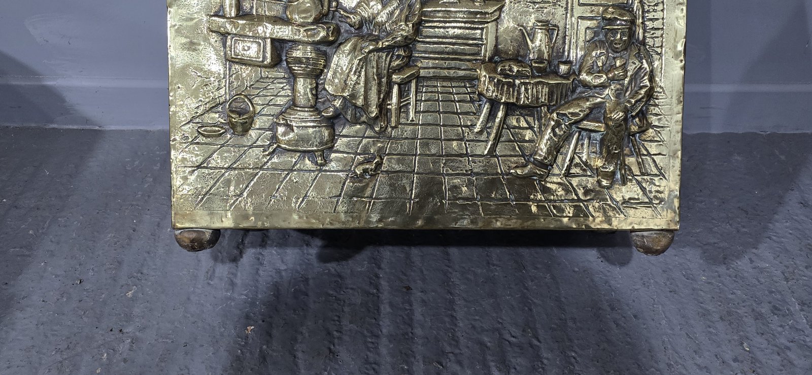 A very good large Victorian Brass Repousse log bin, on small bun feet, in excellent overall condition.