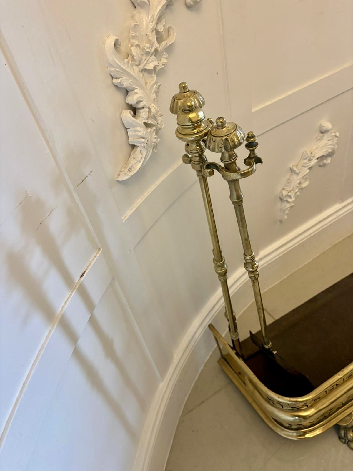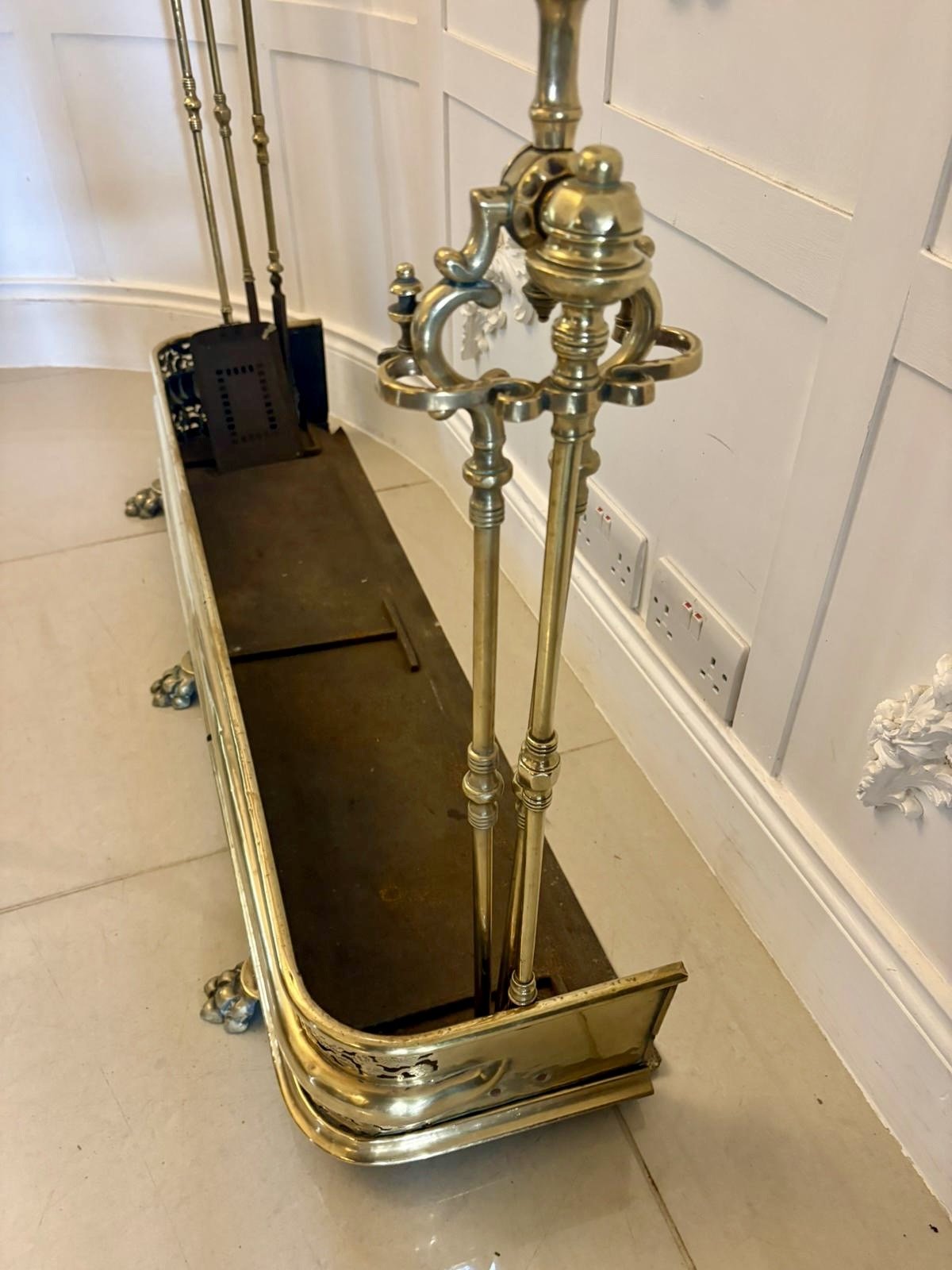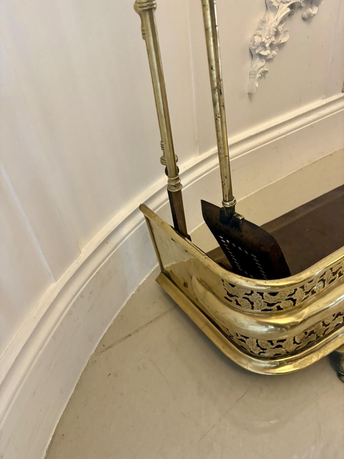 Unusual and Rare Quality Antique Regency Brass Fender with Original Fire Irons
