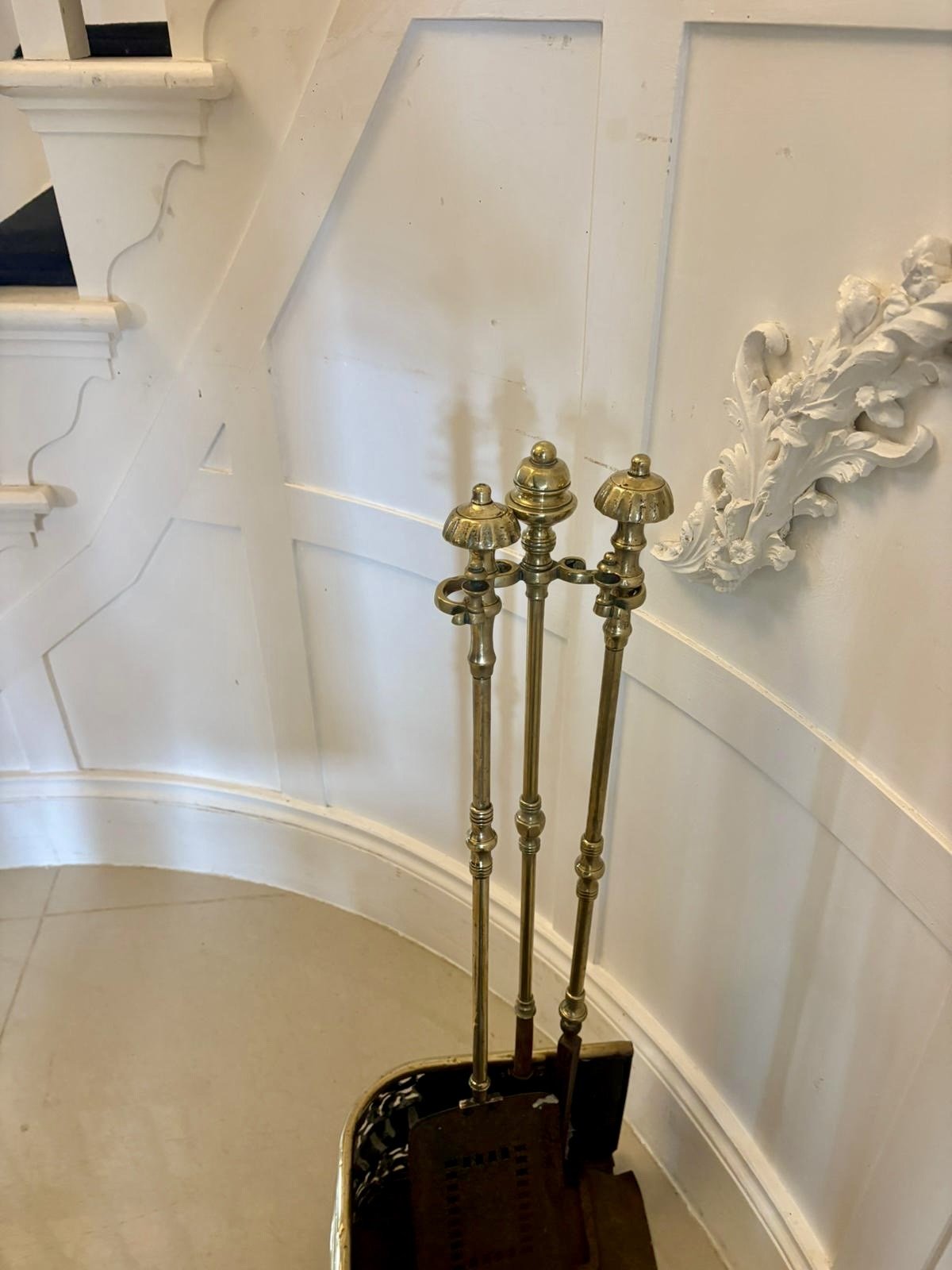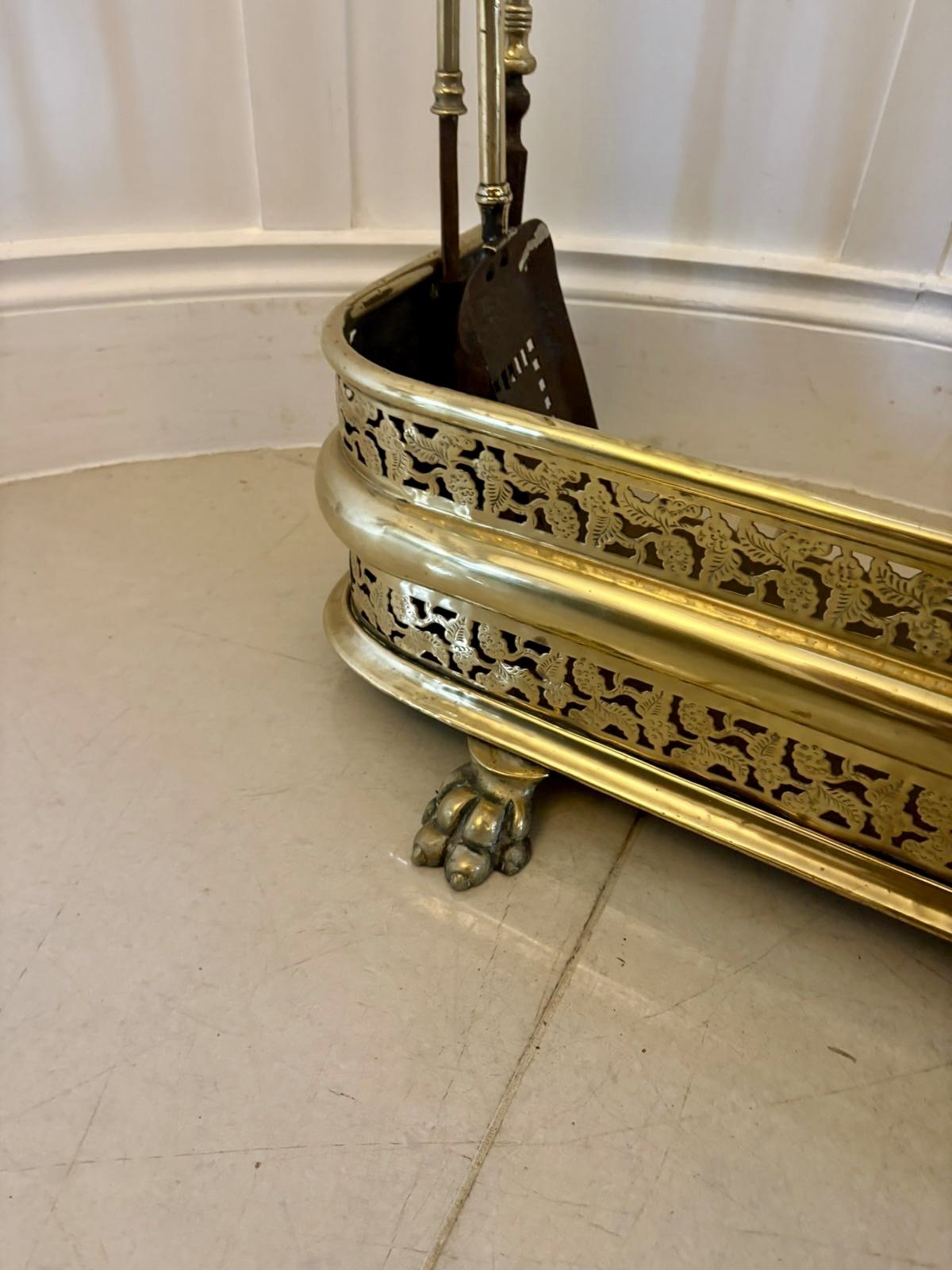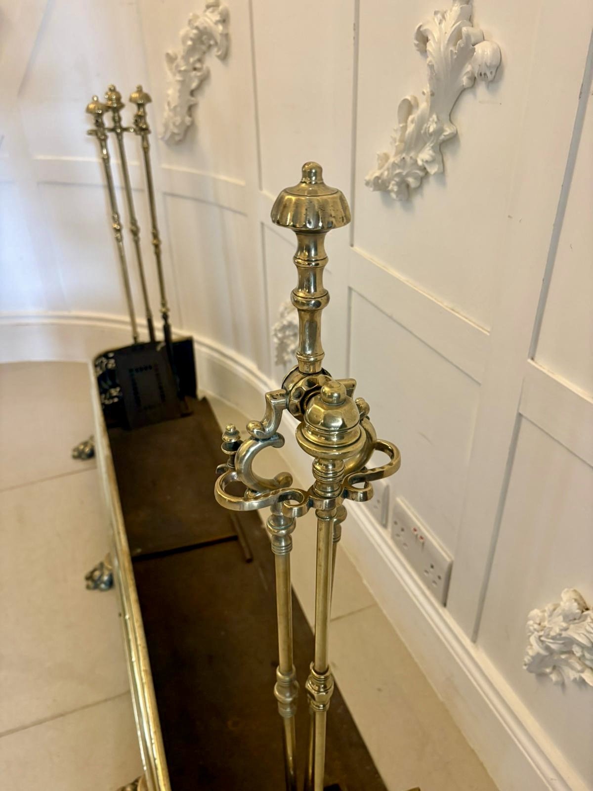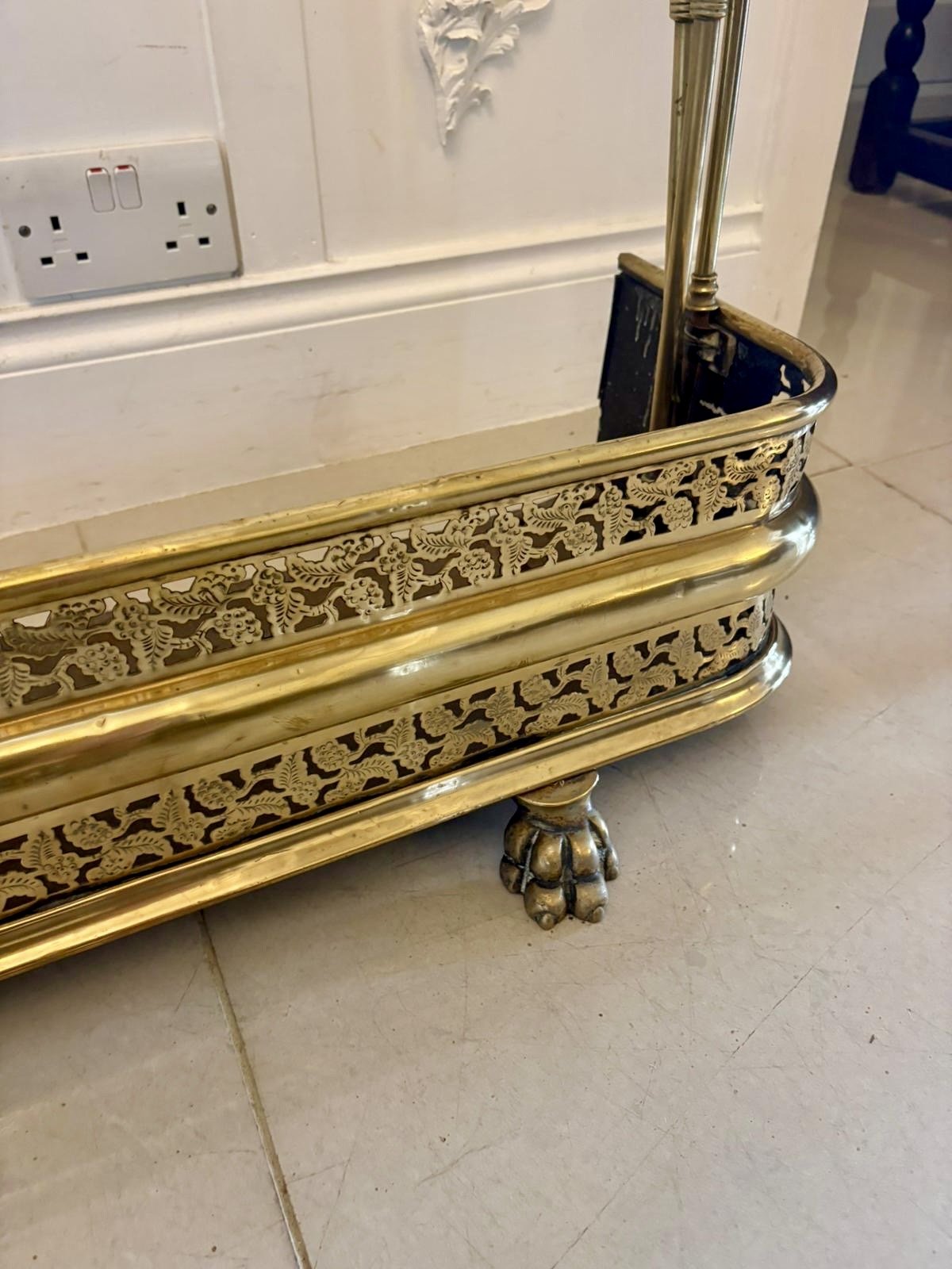 Unusual and Rare Quality Antique Regency Brass Fender with Original Fire Irons