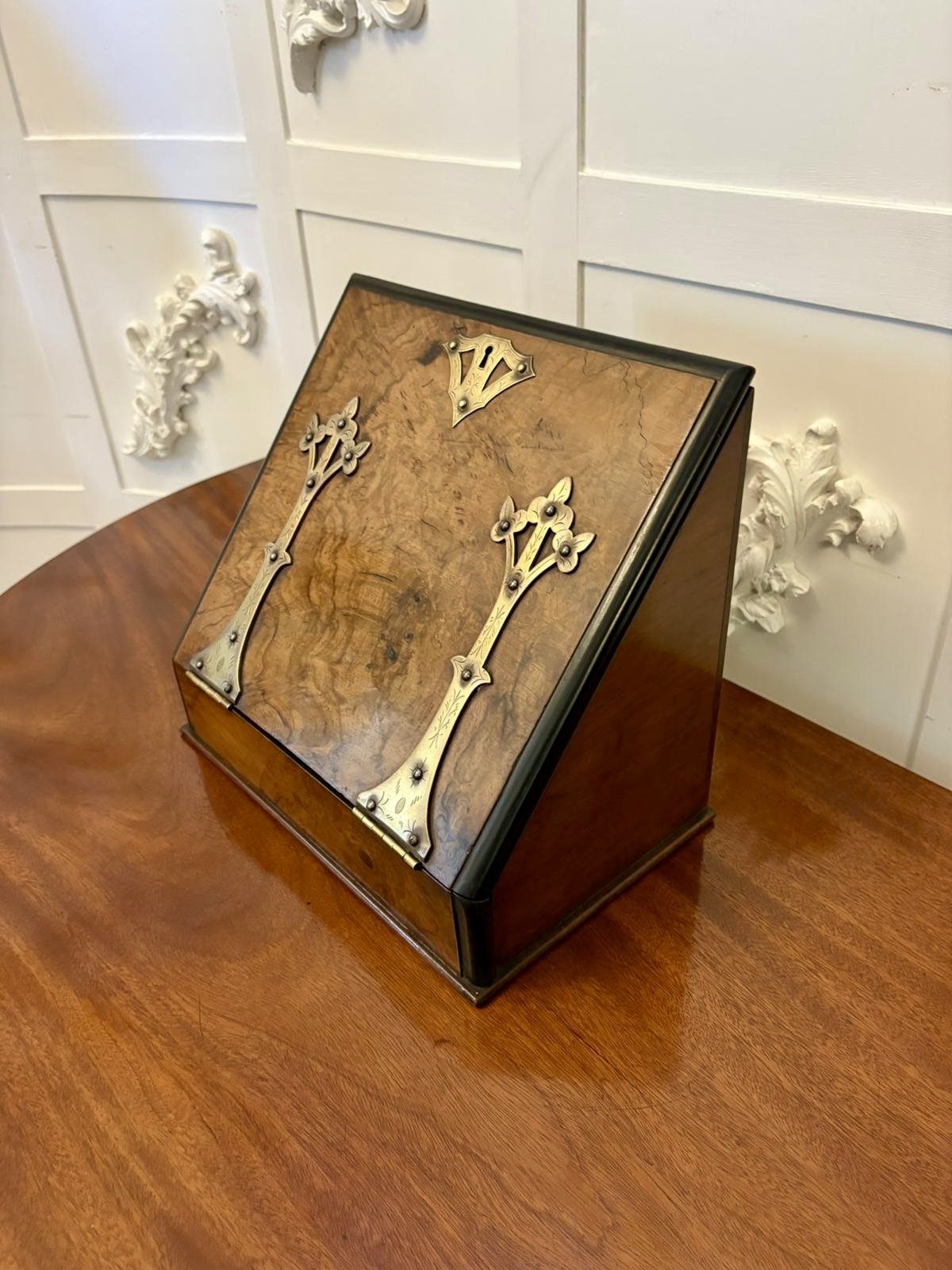 Unusual Antique Victorian quality burr walnut brass mounted stationery box