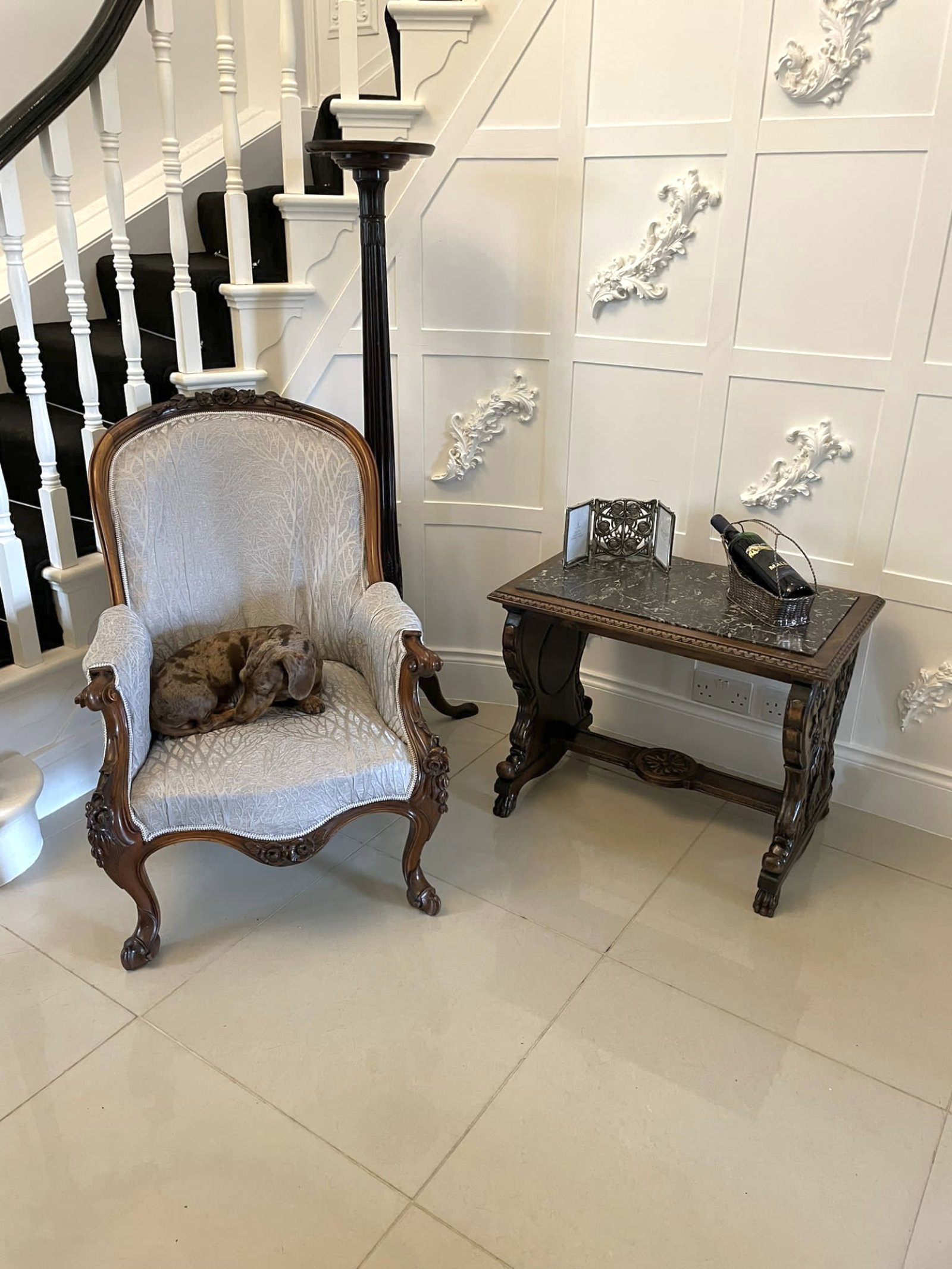 A quaint example boasting fantastic carving and is of a desirable proportion. It can also be used as a lamp or side table.