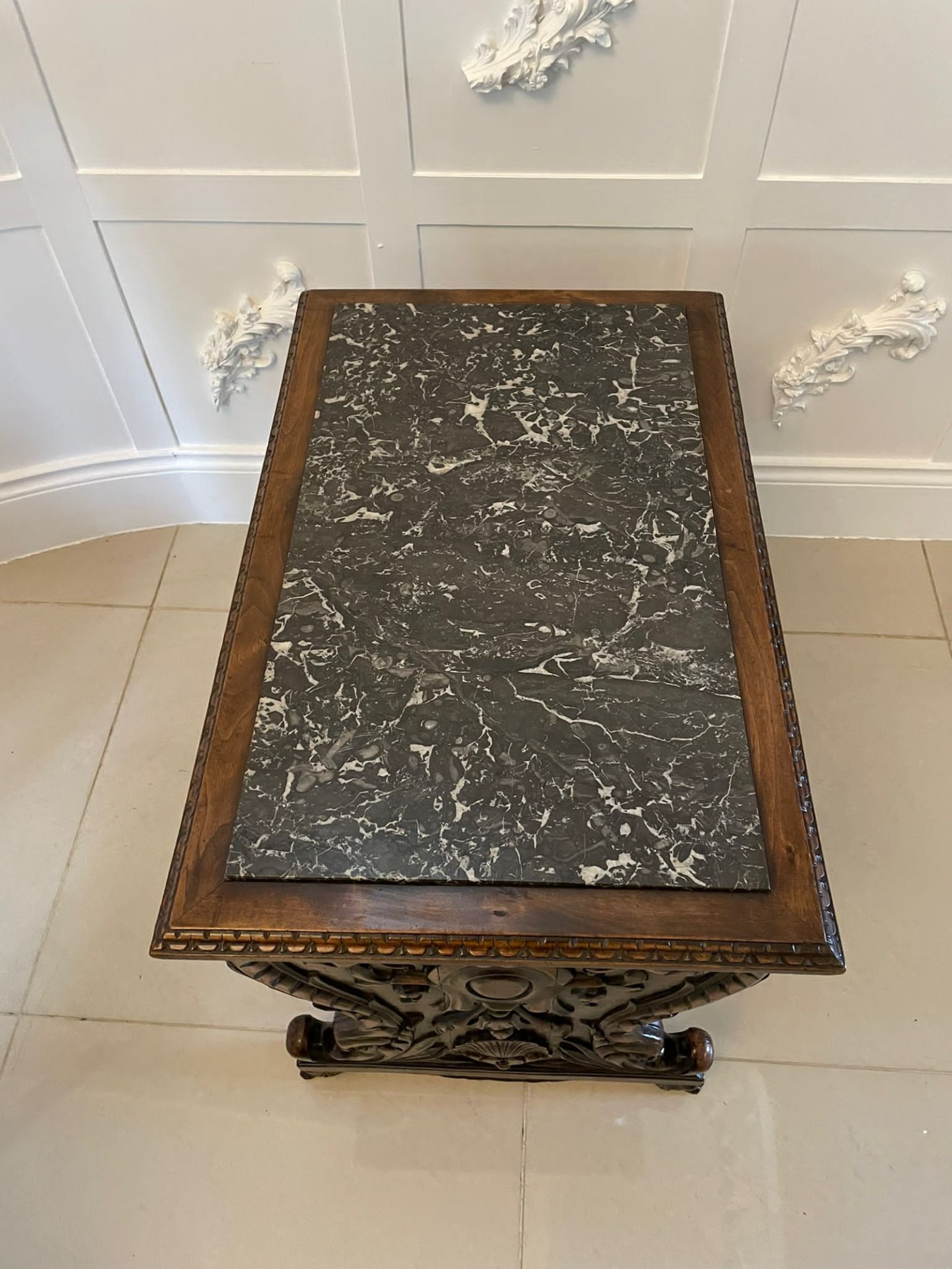 Unusual Antique Victorian Quality Carved Walnut and Marble Top Italian Coffee Table