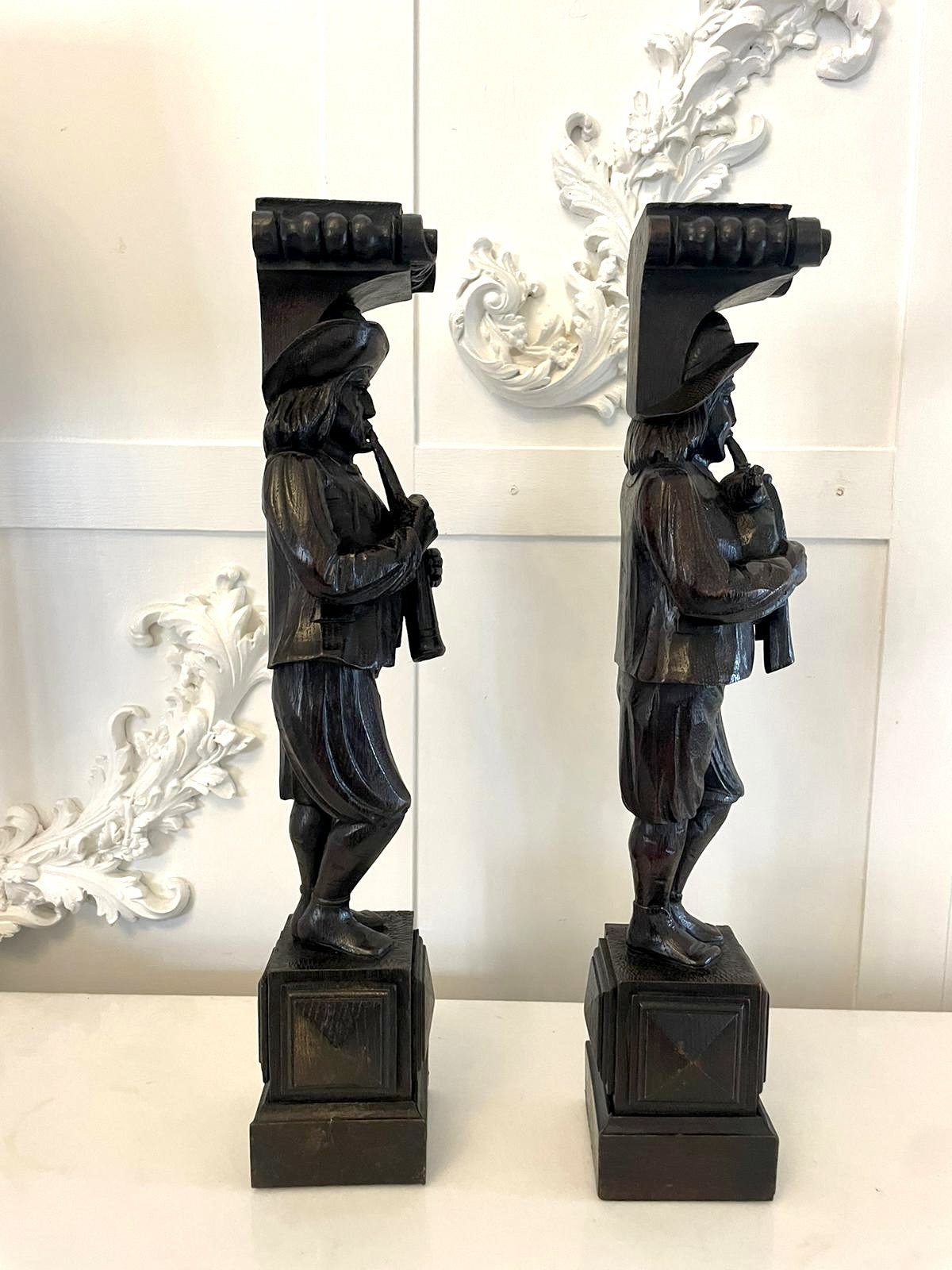 Unusual Pair of Antique Victorian Quality Carved Oak Figures