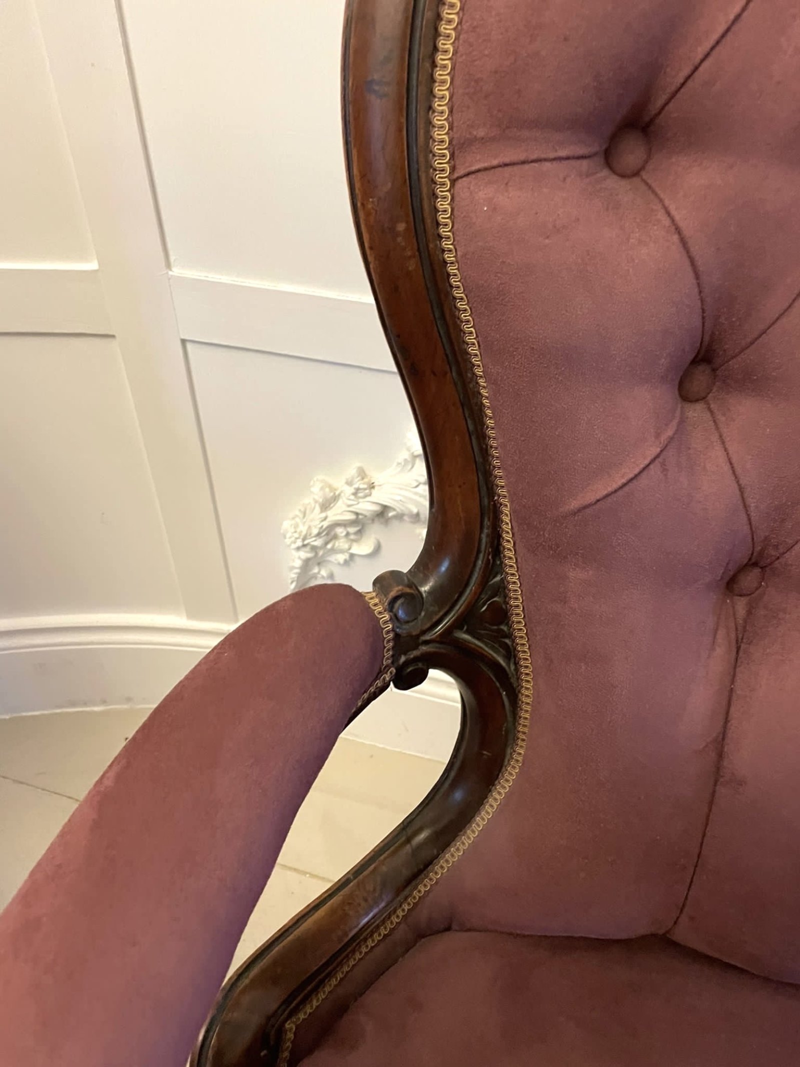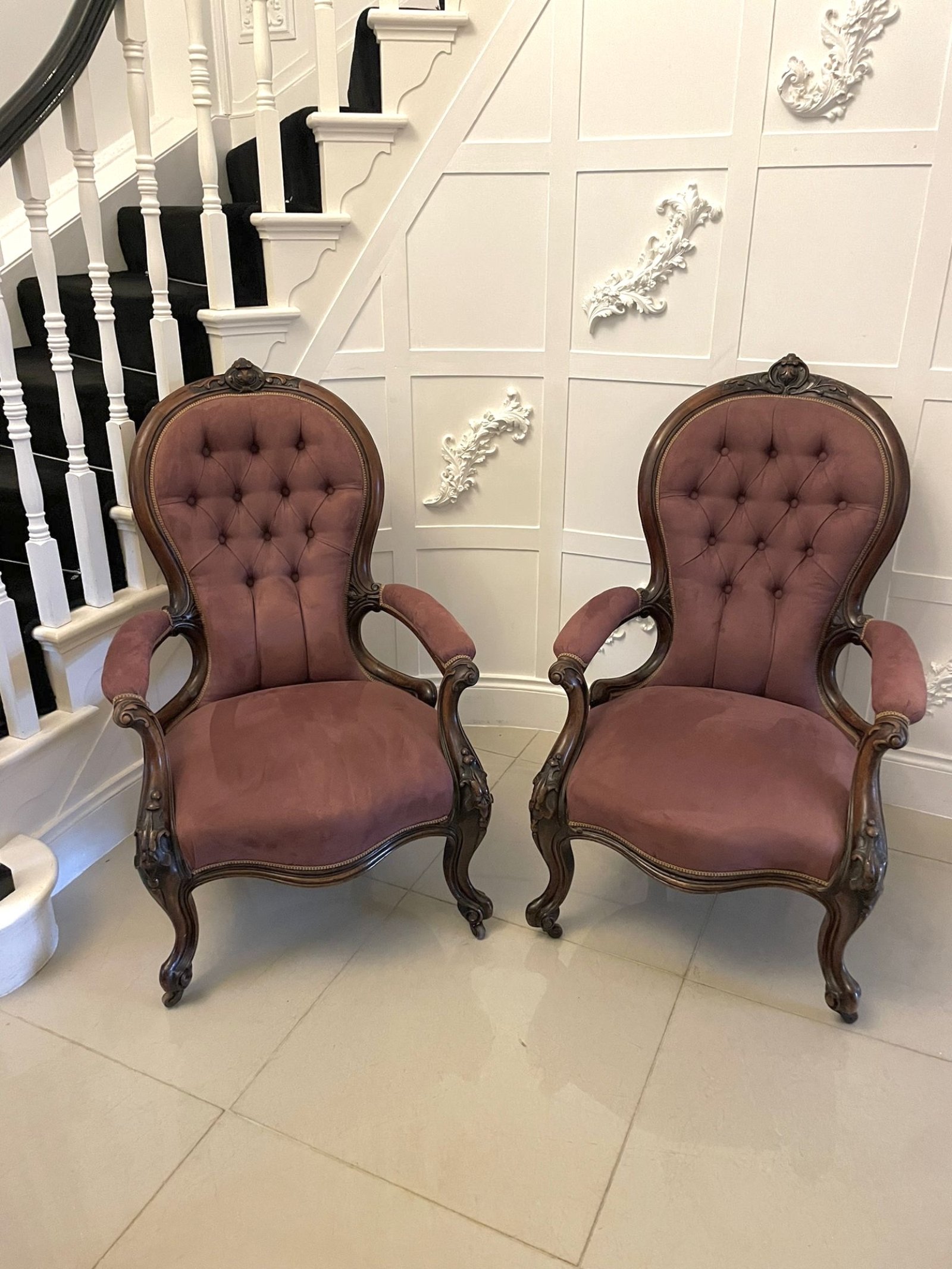 Unusual Pair of Antique Victorian Quality Carved Walnut Armchairs