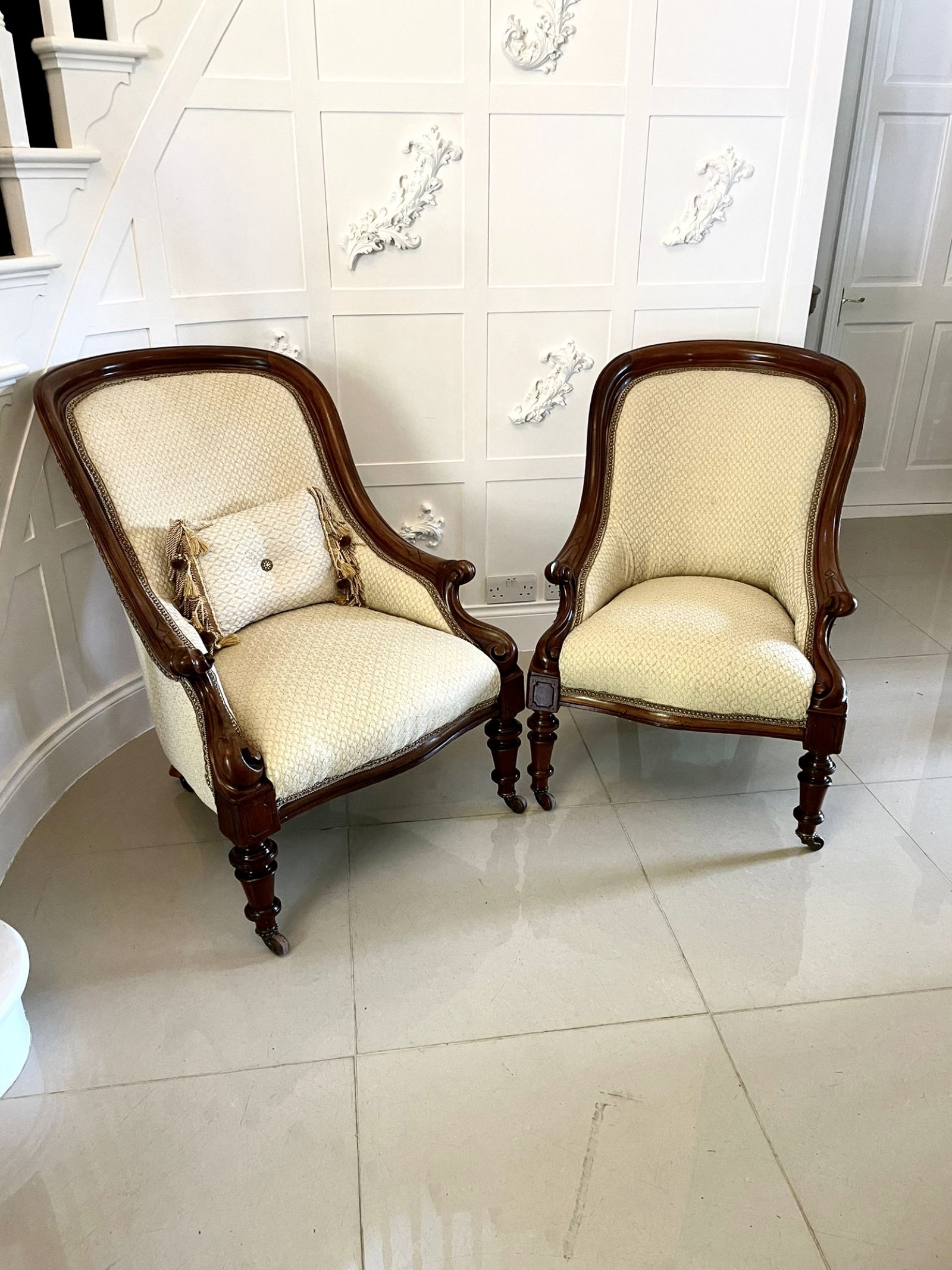 Unusual Pair of Antique Victorian Quality Mahogany Armchairs