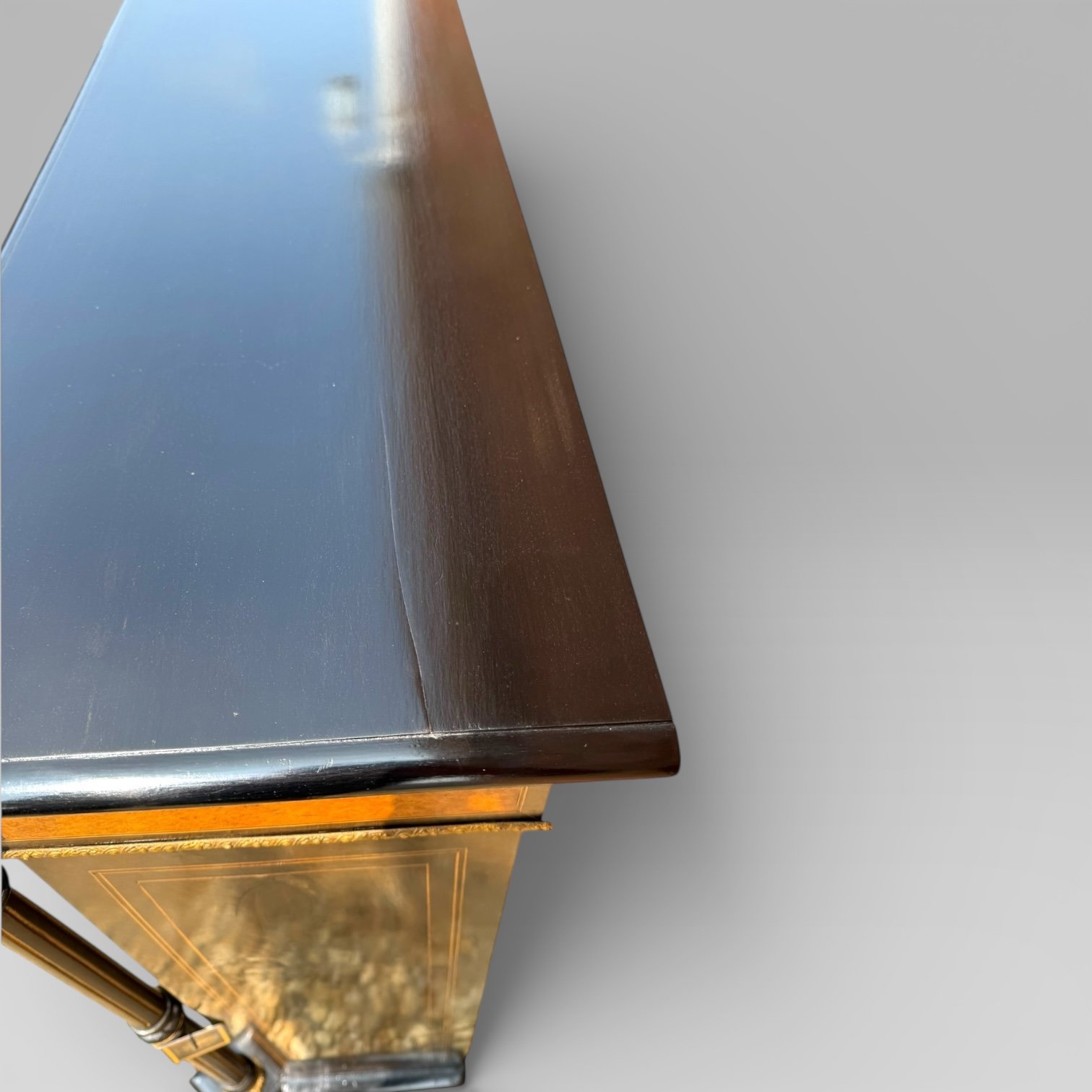 Victorian Aesthetic Movement Amboyna & Ebonised Glass Double Door Pier Cabinet