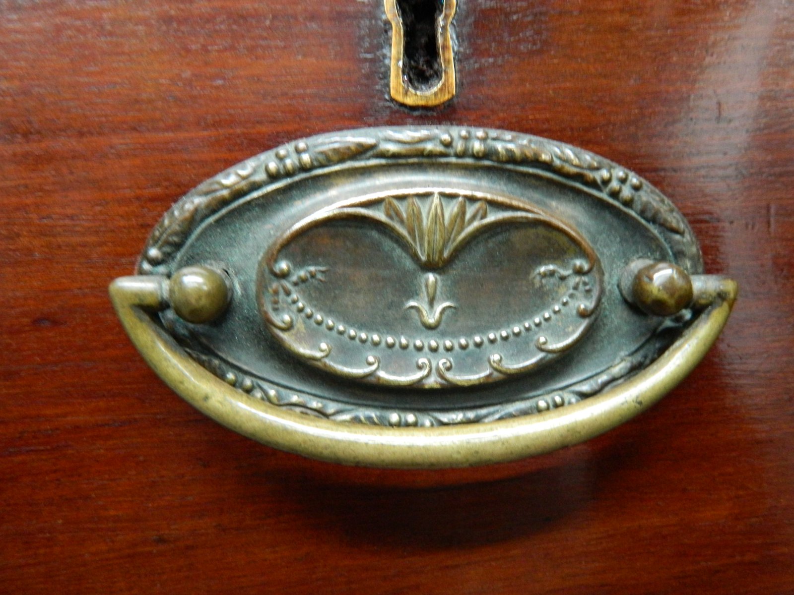 This Victorian Mahogany Chest of Drawers is a stunning piece of antique furniture from the late 19th century. Made from high-quality mahogany with brass handles, this free-standing chest of drawers exudes a classic Victorian style. With five spacious drawers, it is perfect for adding a touch of vintage charm to any room in your home. Measuring 105cm in length, 103cm in height, and 50cm in width, this chest of drawers is a timeless addition to any antique furniture collection. This chest of drawers has 2 short over 3 long graduating drawers, all slide freely, all locks are in place , no keys, the bases of the drawers are solid with a knot missing from the 3rd drawer down, The handles have got a nice ornate back plate giving the chest that little bit extra. The chest stands on bracket feet. This chest has had some beading repairs to the drawers, but for over 100 years old that's nothing, ready to live another 100 years, some age related marks a small split in the top, Please see all pictures for condition.