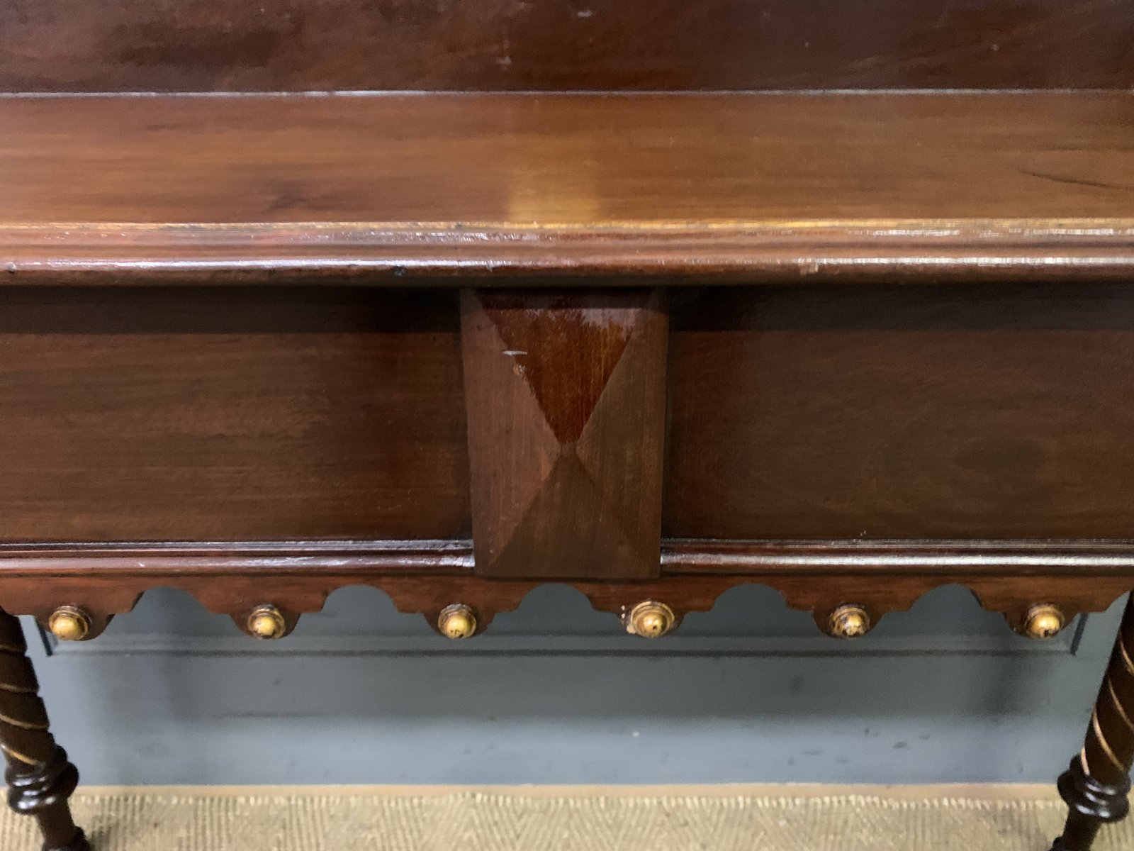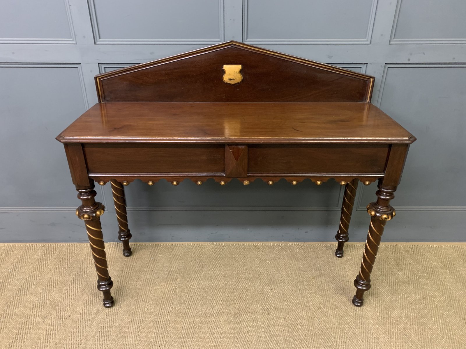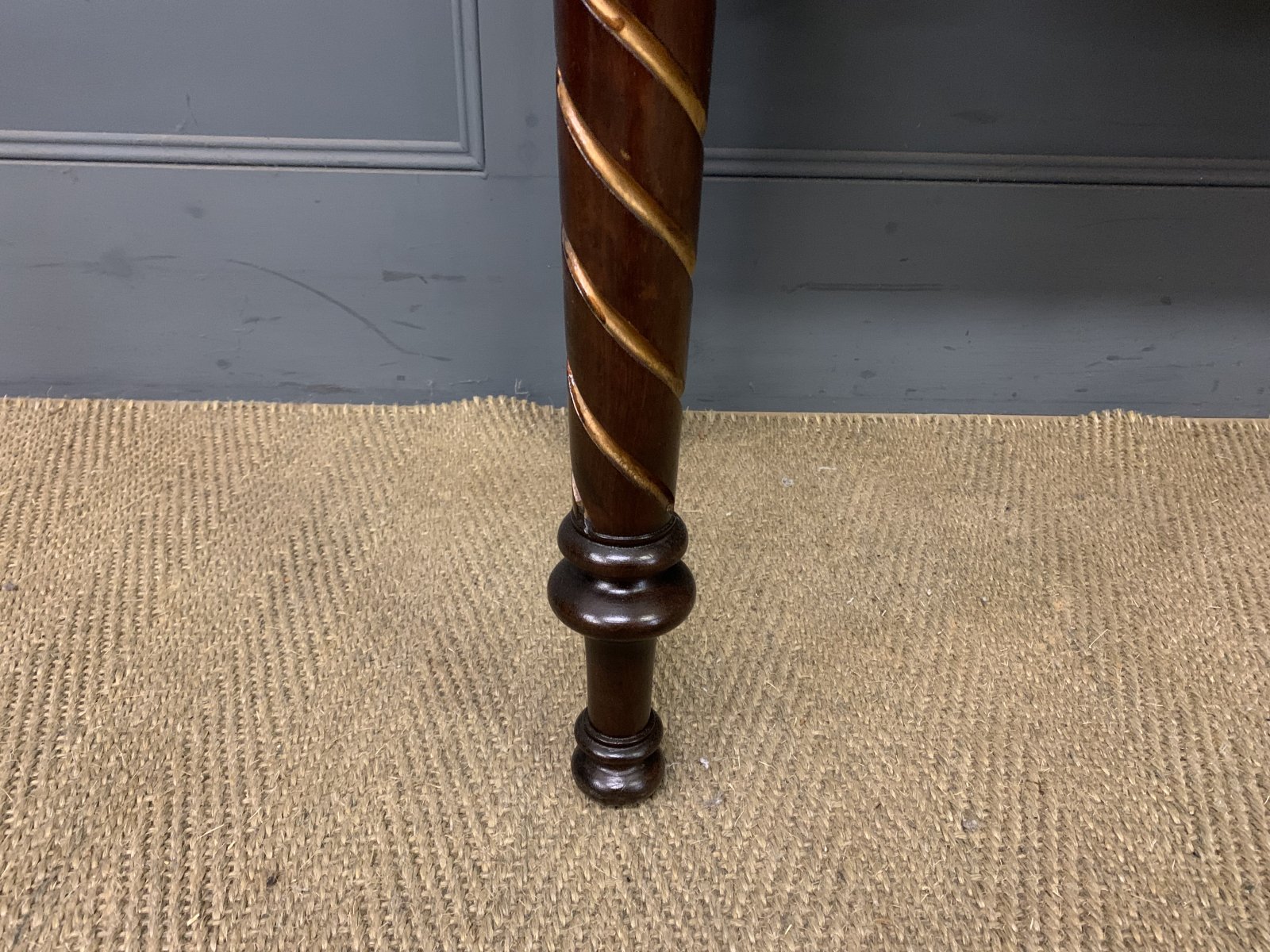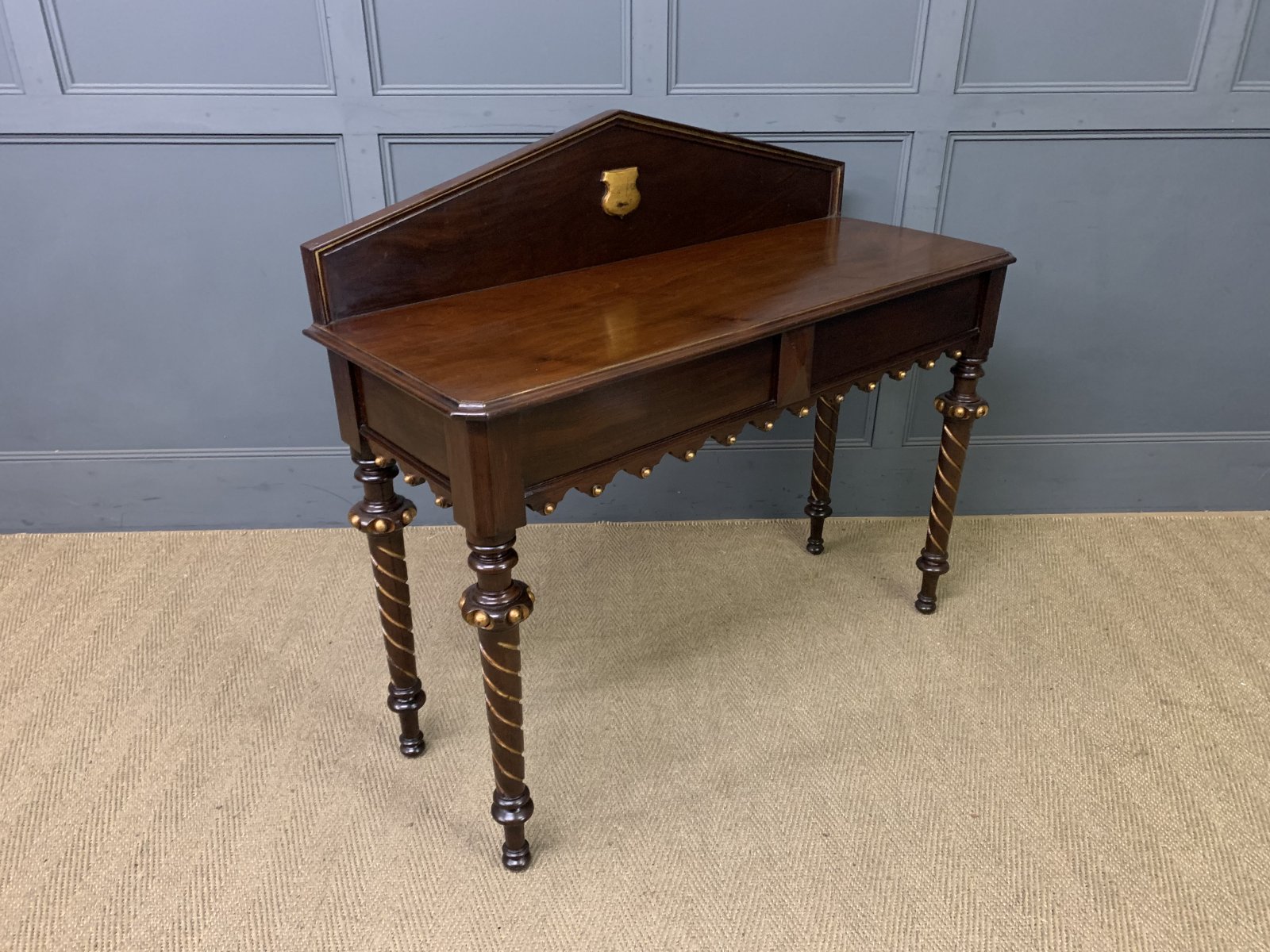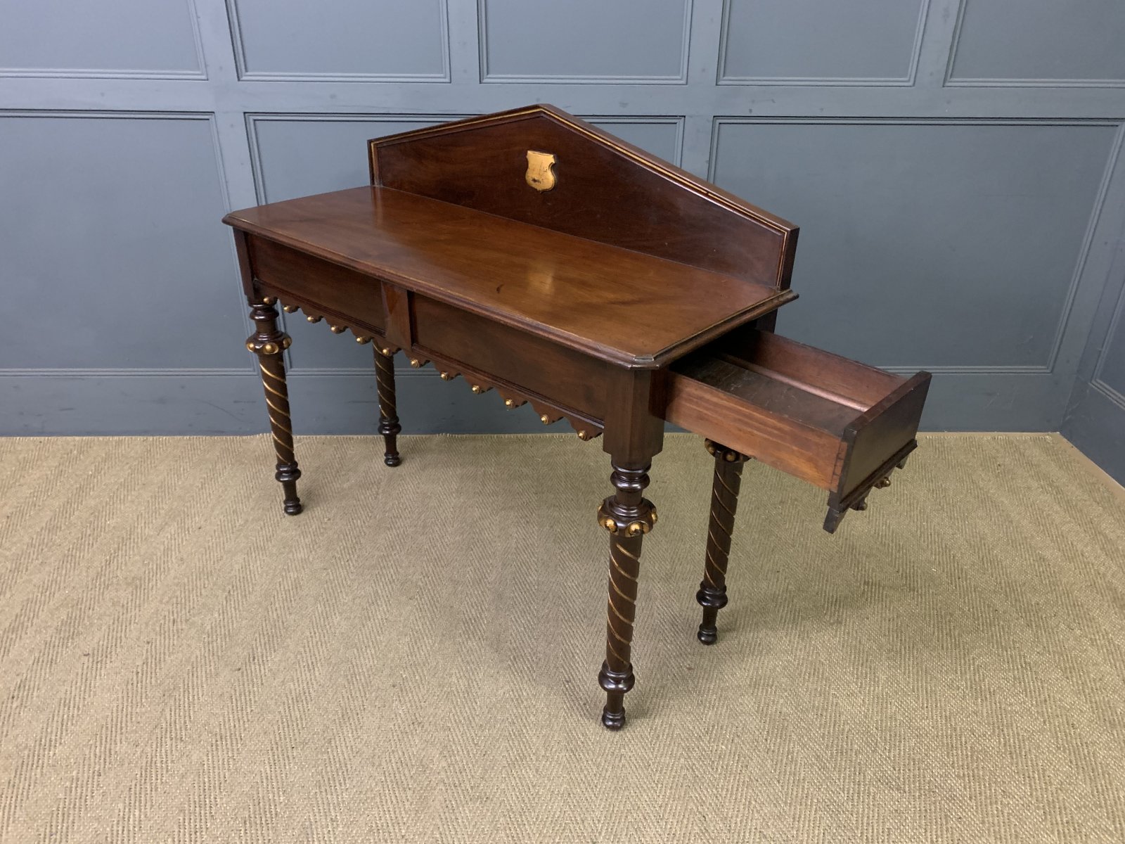 A good mid-Victorian period mahogany hall table. Of very good construction in solid mahogany. With a single drawer to the right hand side. With an upstand to the back and standing on lovely spiral twist turned legs. Cleaned and waxed in our workshops and now offered for sale in very good condition, ready to go straight into the home.