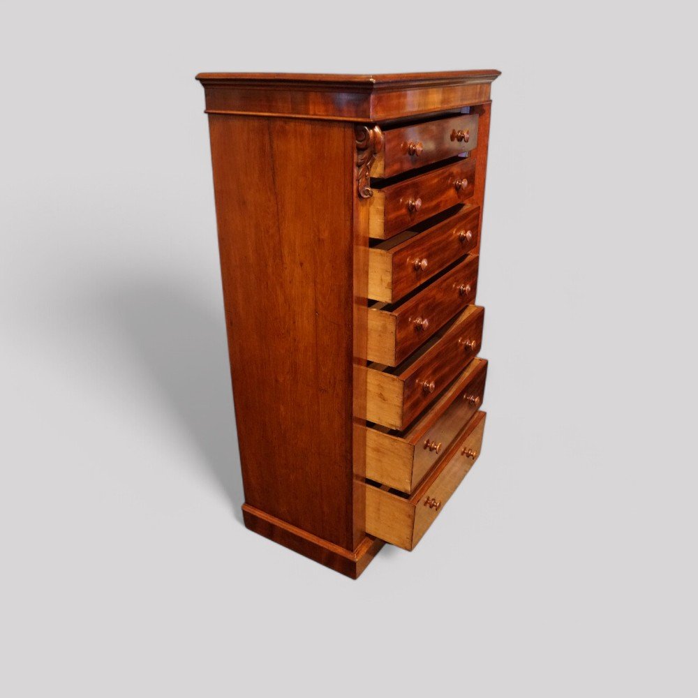 This Victorian mahogany Wellington chest carries the Hingstons Antiques product guarantee plate which gives you the peace of mind that any item with this plate, is of the quality and condition expected when purchasing from Hingstons Antiques Limited. All our goods are individually selected by Nick Hingston who uses his experience of over 45 years of trading to select the items with the best design and condition suitable to be placed into our quality stock.