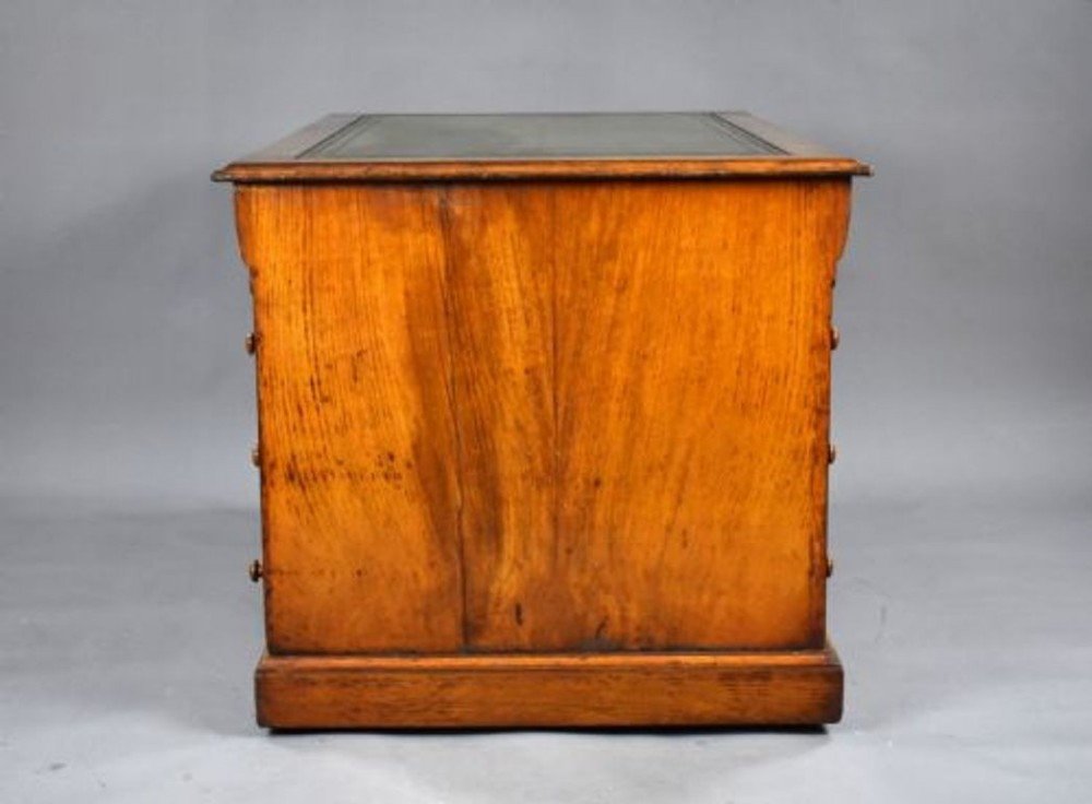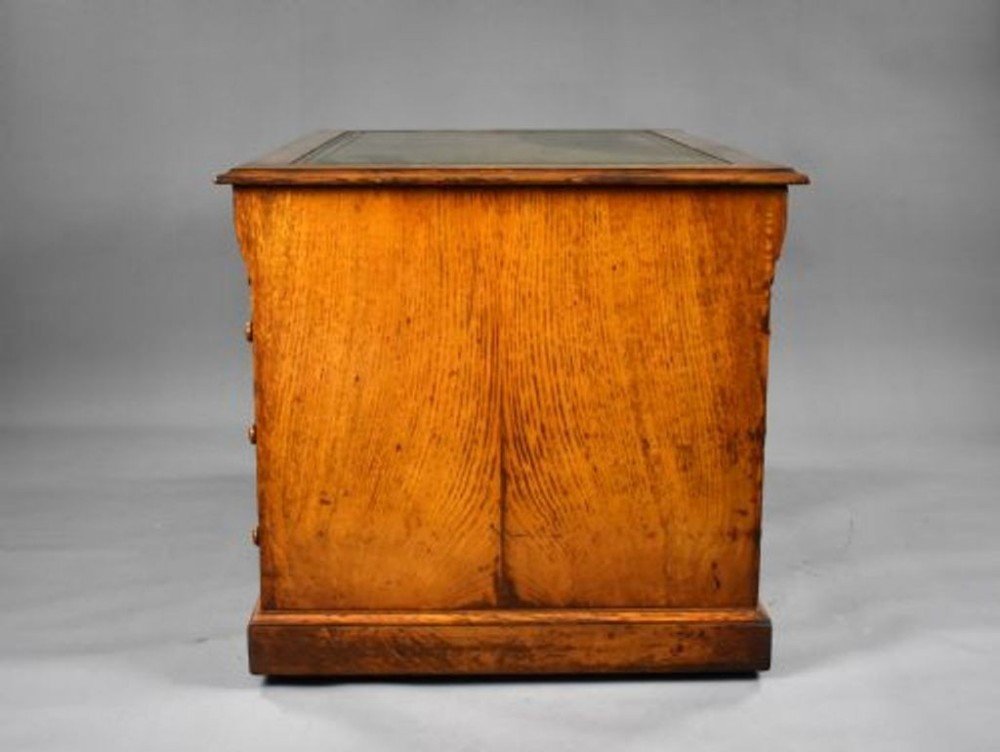 A handsome Victorian oak desk of generous proportions, offering both practicality and timeless charm. Crafted from solid oak with a warm golden patina, this well-constructed piece features nine drawers and a central frieze drawer, all retaining their original turned wooden knobs.
