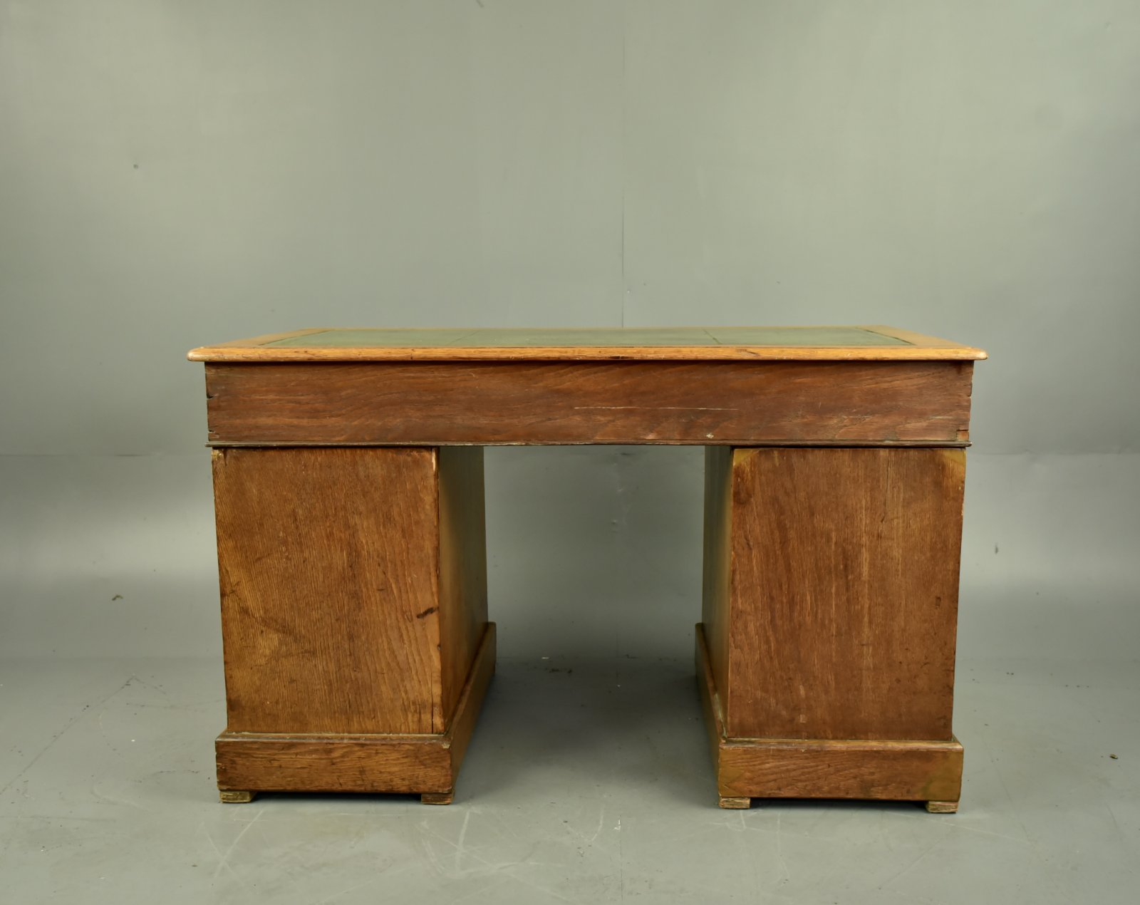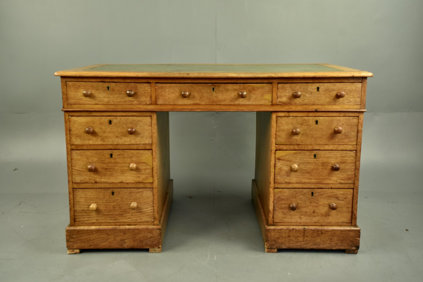 Victorian oak twin pedestal desk with 9 drawers and leather insert top .circa 1880