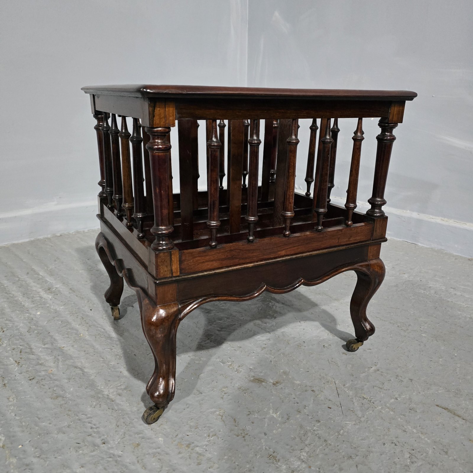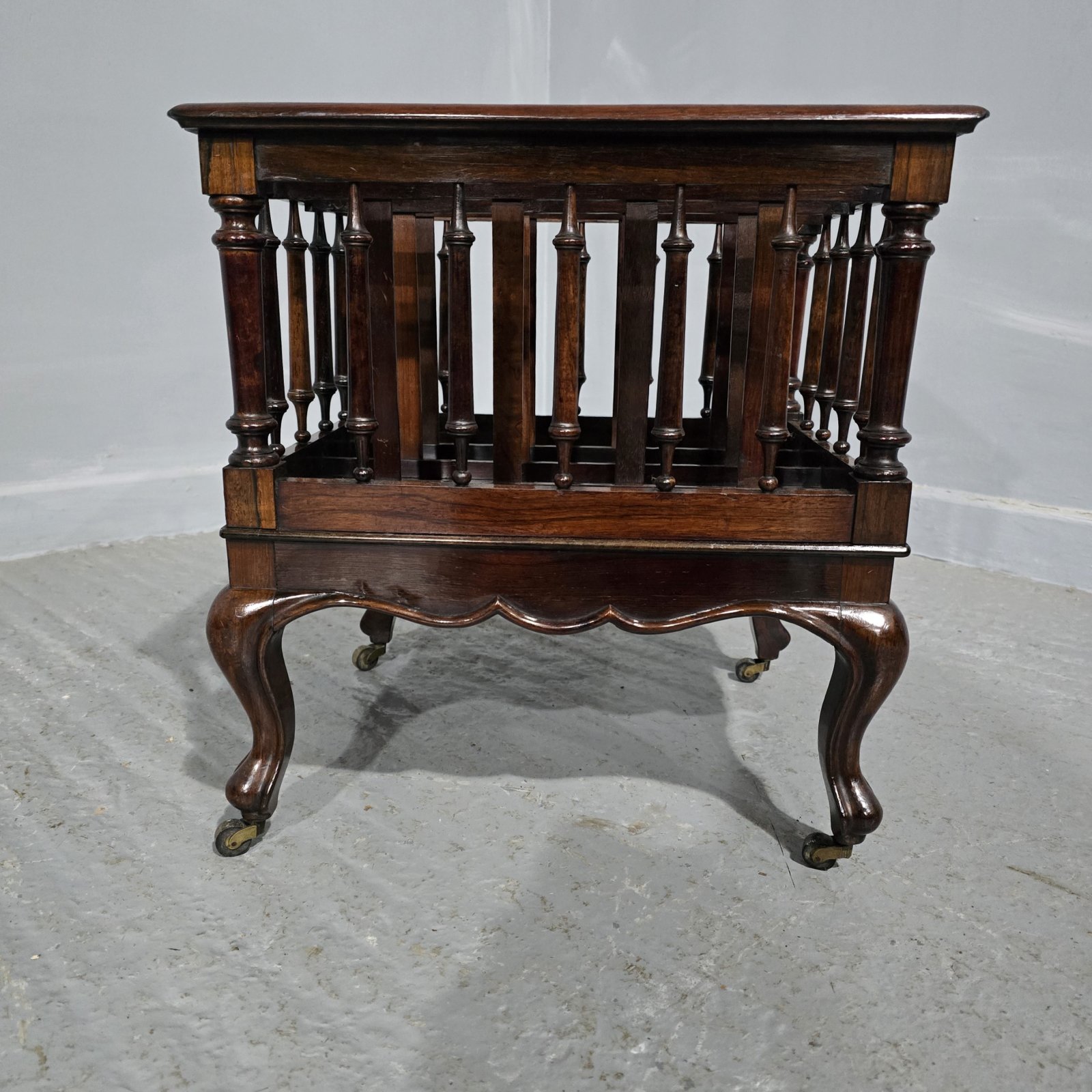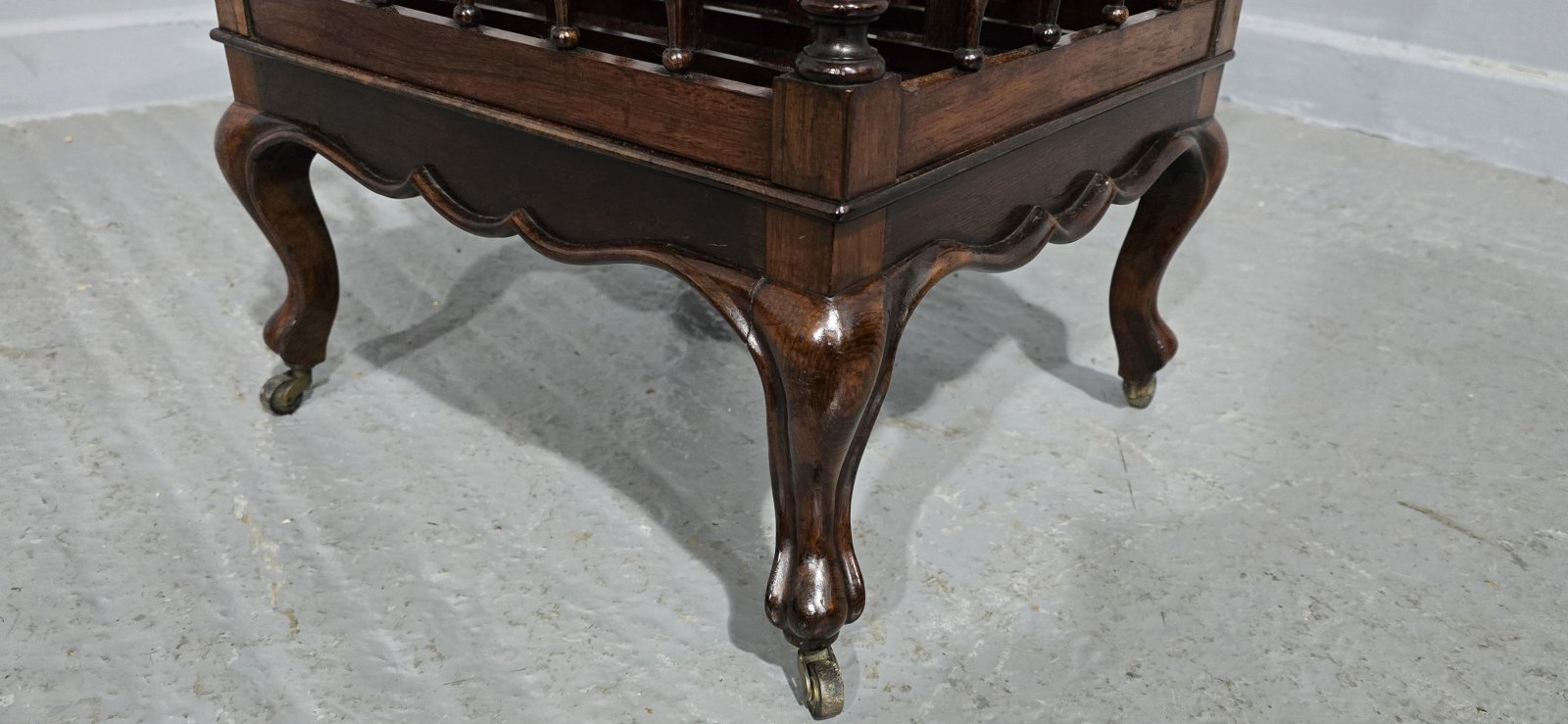Late Victorian, rosewood canterbury of rectangular shape, divide into 4 sections with tapering turned supports, stand on cabriole shaped legs, all in excellent original condition throughout. c1890