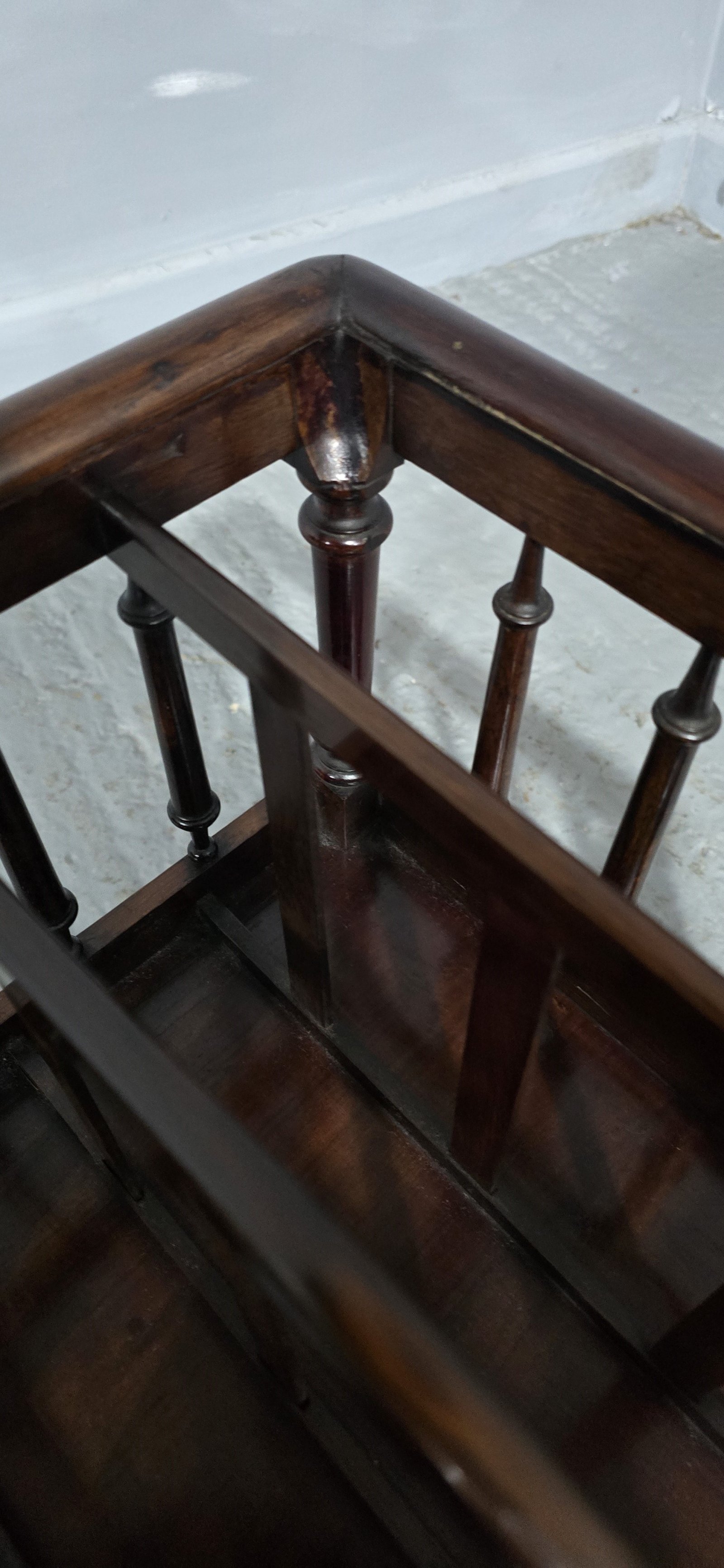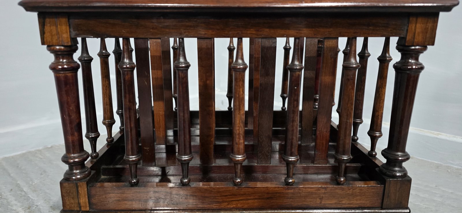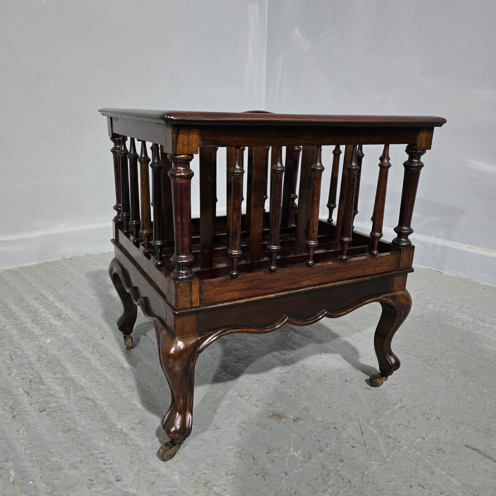 Late Victorian, rosewood canterbury of rectangular shape, divide into 4 sections with tapering turned supports, stand on cabriole shaped legs, all in excellent original condition throughout. c1890