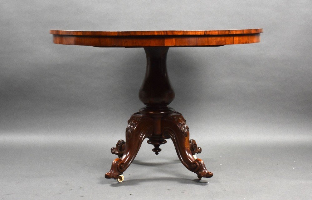 For sale is a good quality Victorian rosewood oval loo table, having a turned stem, above carved cabriole legs, raised on castors, the table remains in very good condition for its age.
