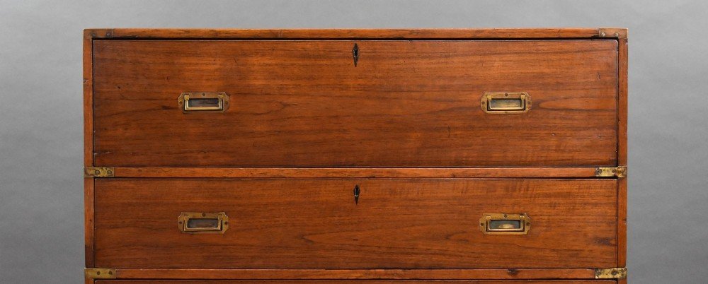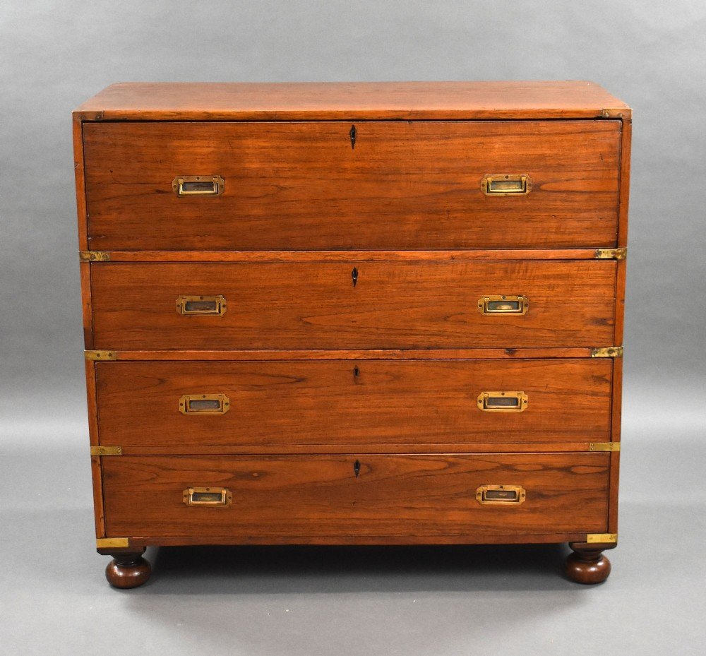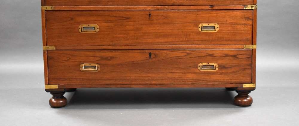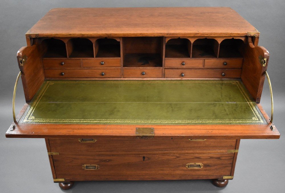 Victorian Teak Campaign Secretaire Chest