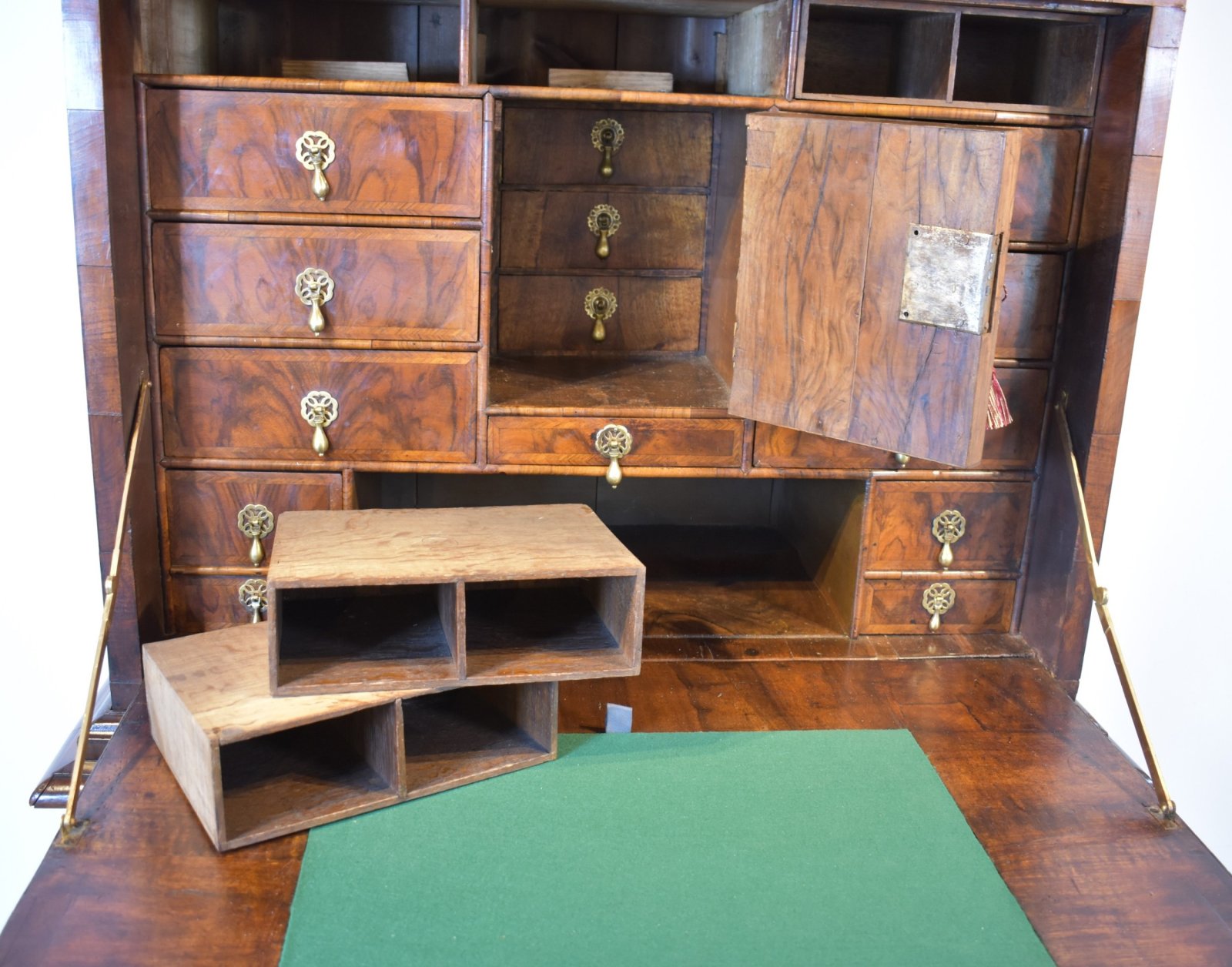 A lovely walnut and pollard oak Queen Anne period secretaire en abbatant circa 1710 -1720 .