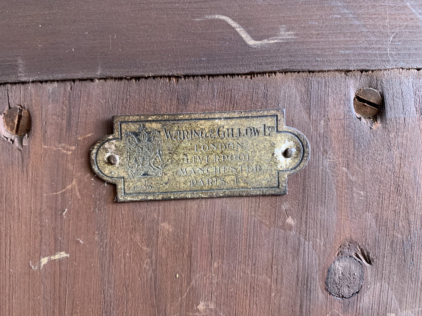 Waring & Gillow is a noted firm of English furniture manufacturers formed in 1897 by the merger of Gillow of Lancaster and Waring of Liverpool.
